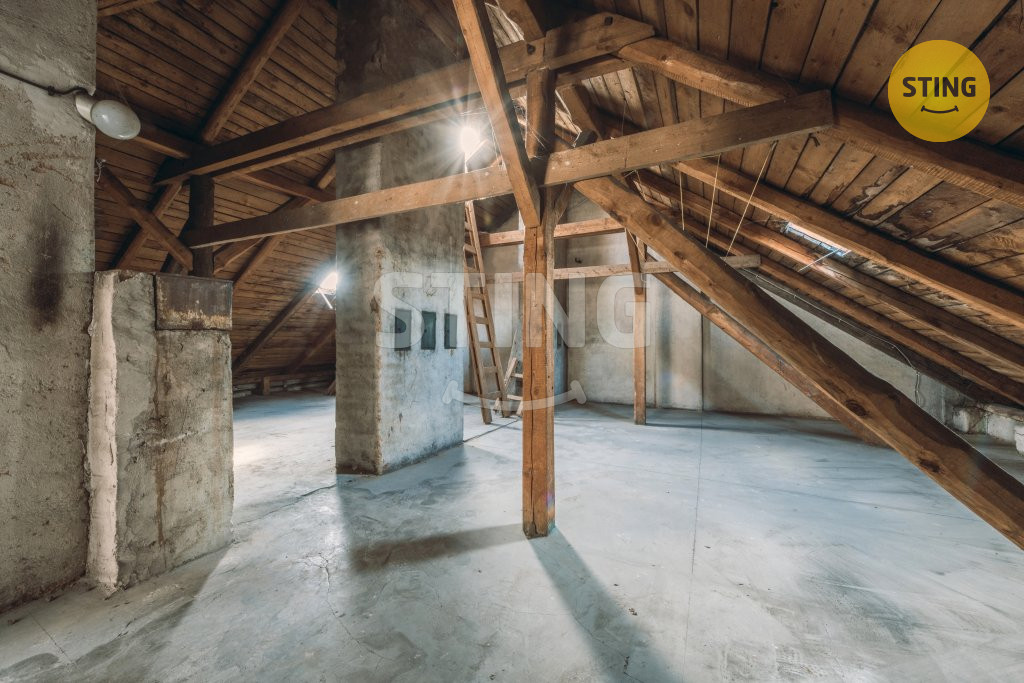 2 byty a půdou, kde je možné vybudovat 3.bytovou jednotku.