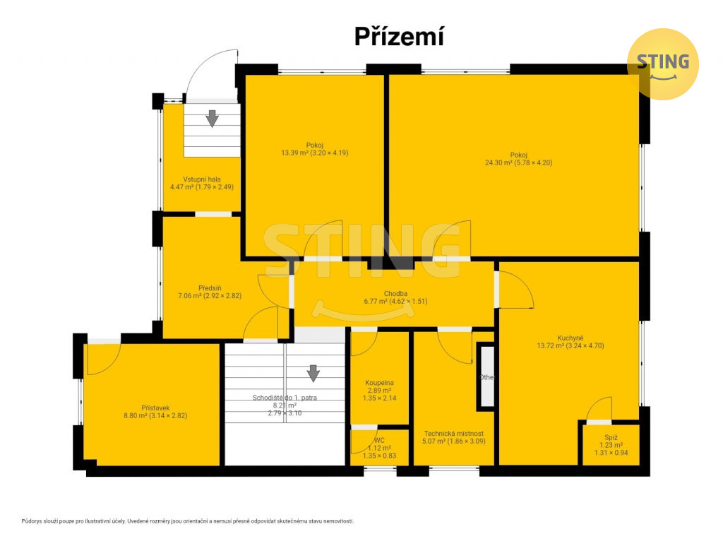 přístupná přímo z domu. Nad obytnou částí se nachází prostorná
