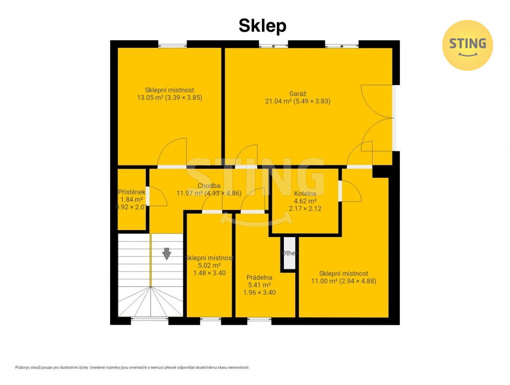 Dům je celopodsklepený, součástí suterénu je také garáž, která je