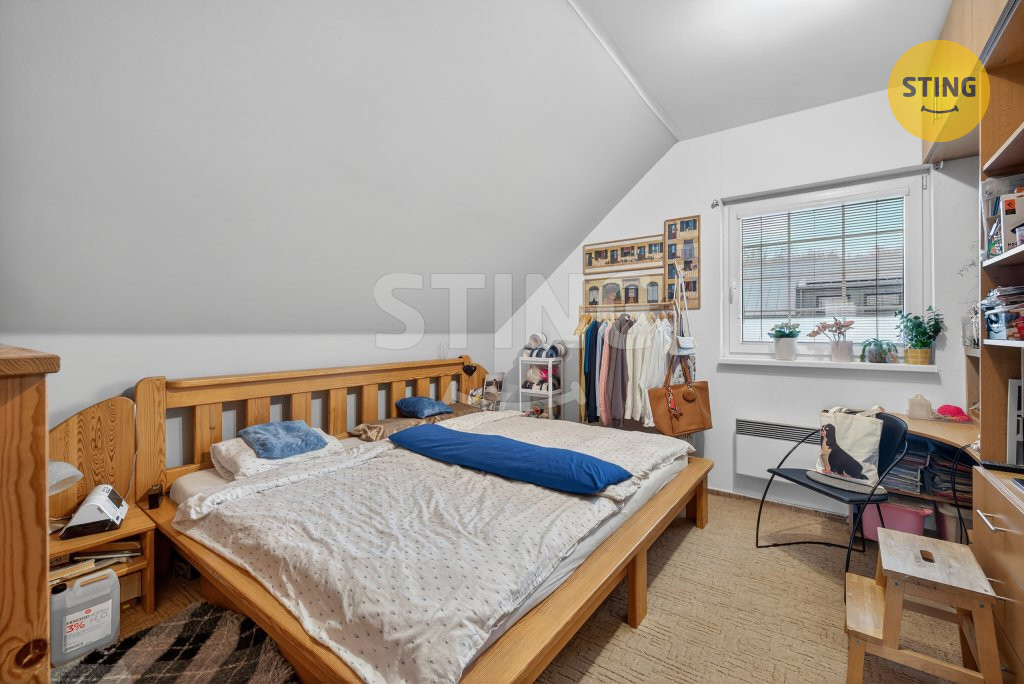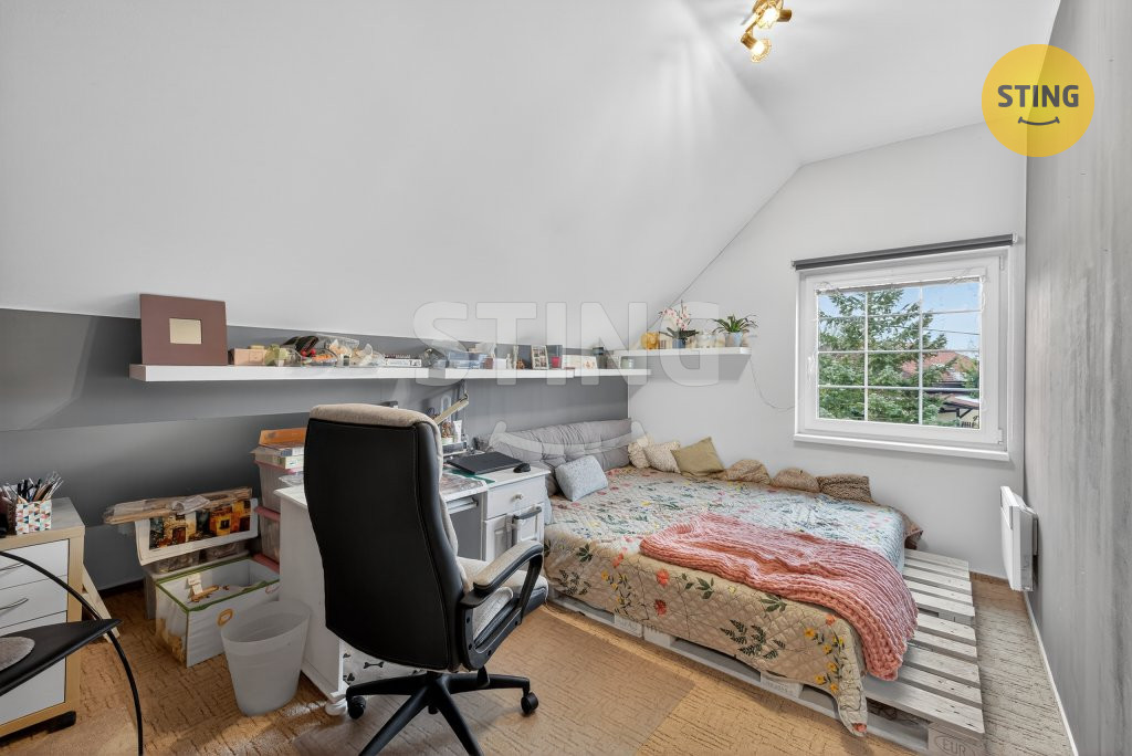vstupem na terasu. Dále ložnice s vlastní koupelnou, samostatný pokoj a