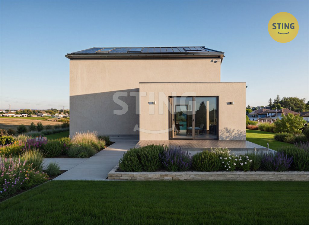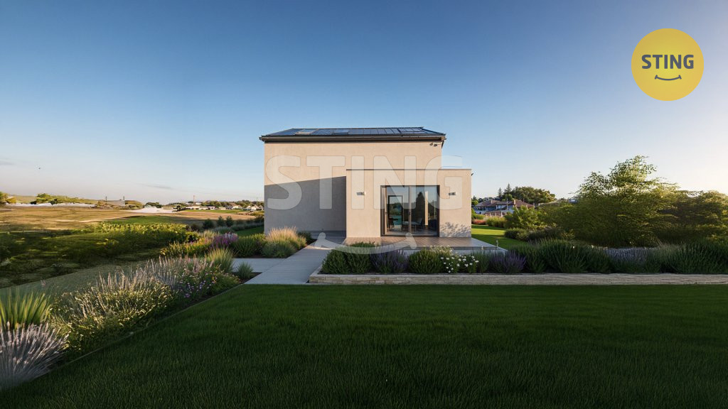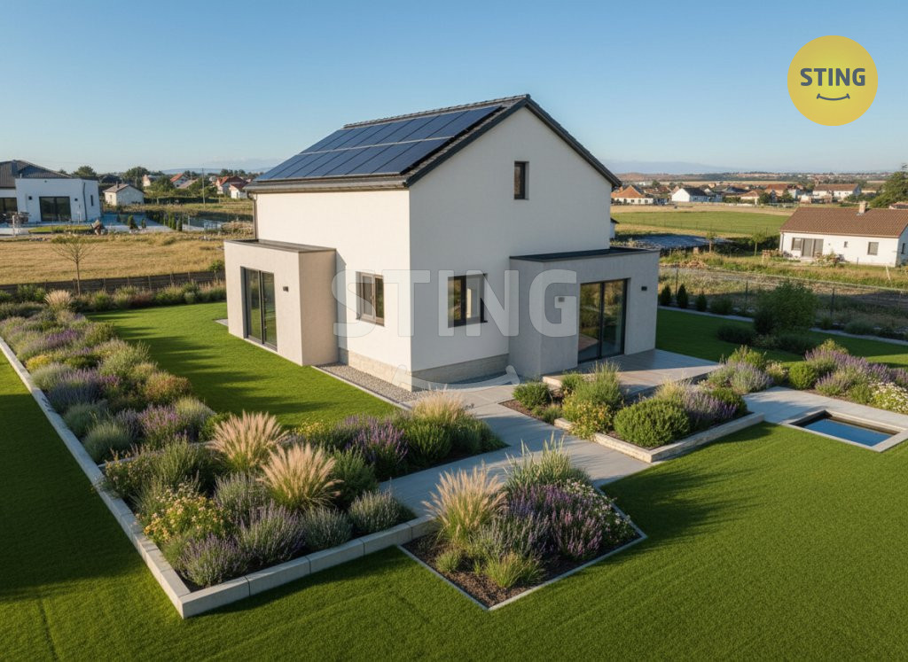 Dům je situován na slunném pozemku o výměře 810 m?, mírně svažitém,