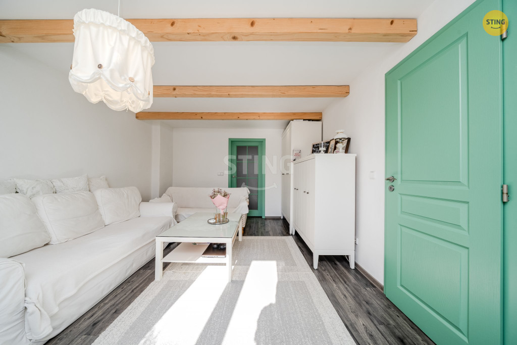 vstupem z chodby se dostaneme do slunného obývacího pokoje