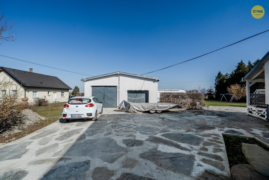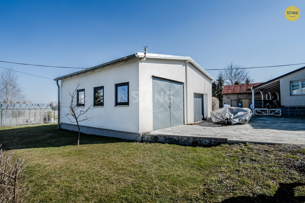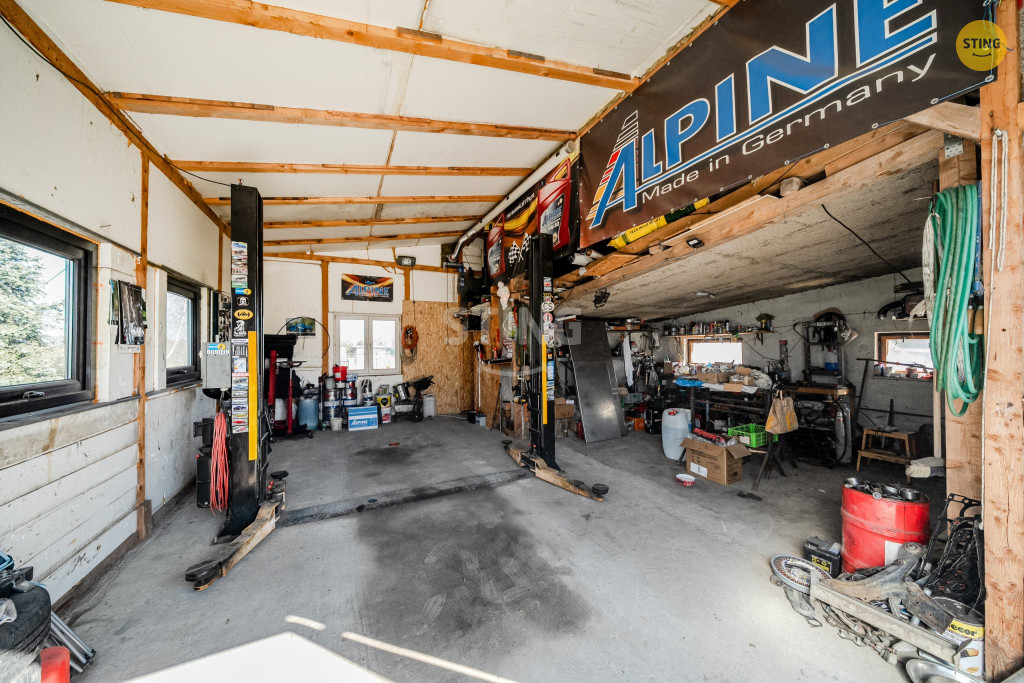 zvedákem na auta s nosností 3 t), se zděnou hospodářskou budovou