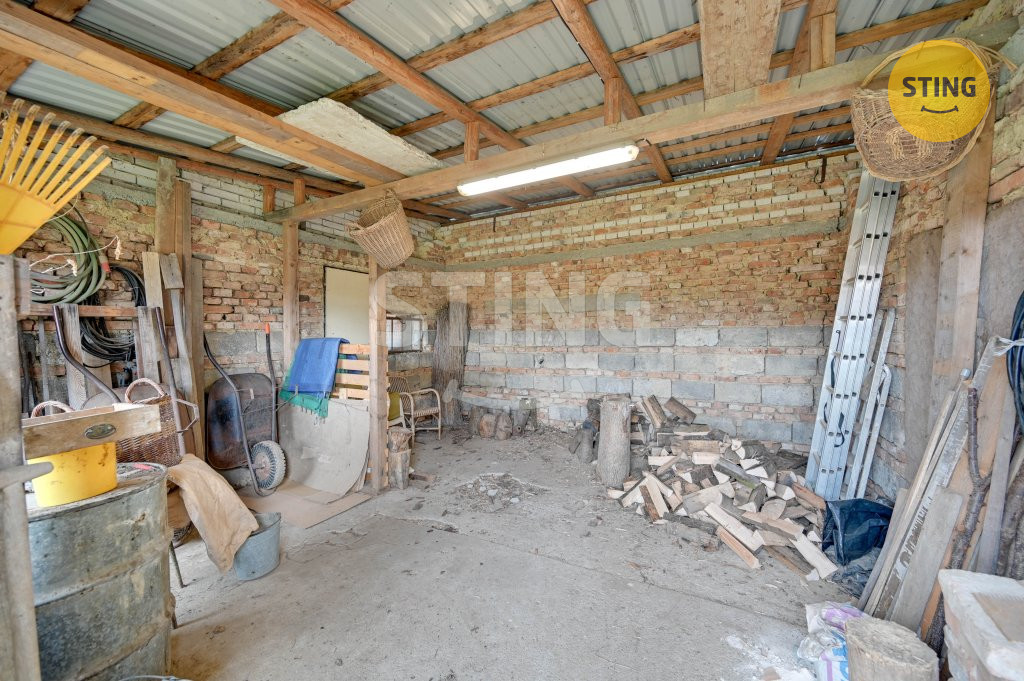 ovládanými vraty, dále kůlna se sklepem. V zadní části zahrady se