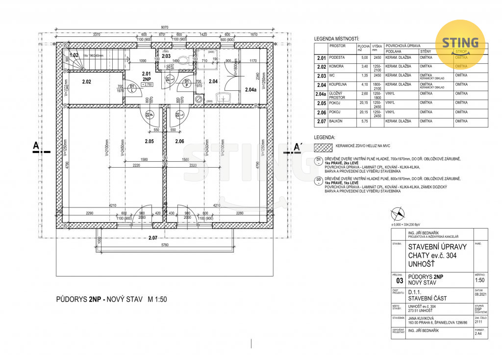 72 m2. Objekt je ve stavu hrubé stavby z r. 2022 s plánovanou