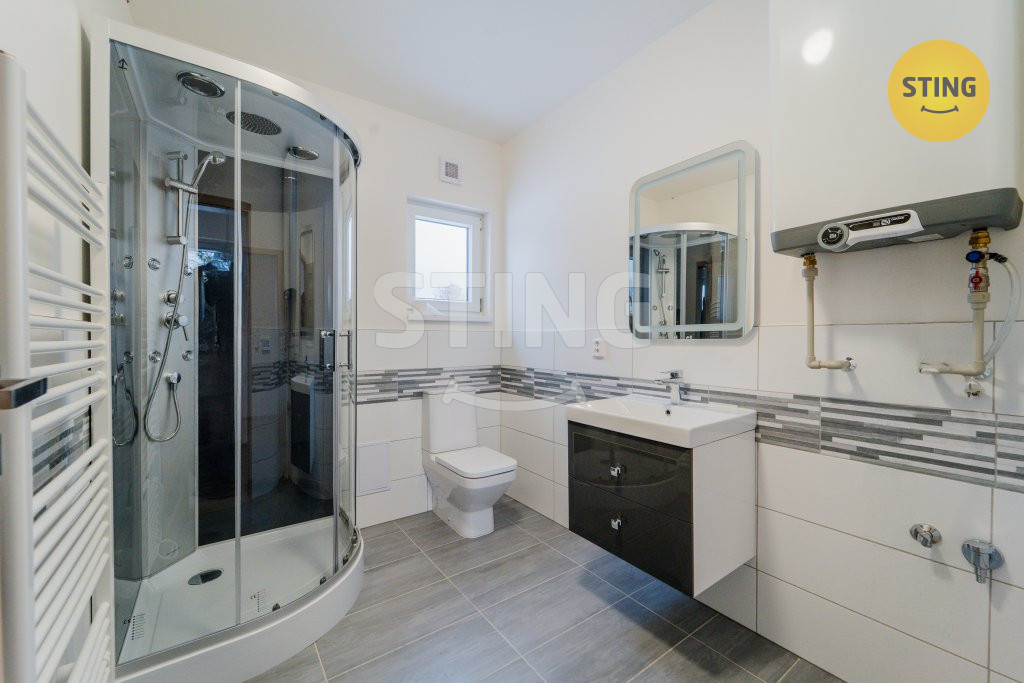 pokoj s přípravou na kuchyn,nová koupelna se sprchovým koutem a wc,a
