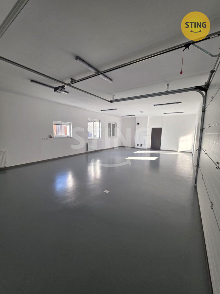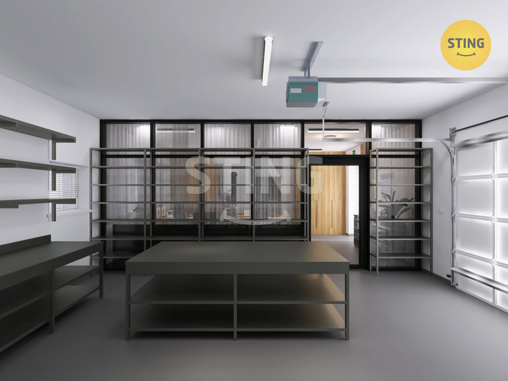 Dispozice zahrnuje prostorný skladovací prostor s novými garážovými vraty