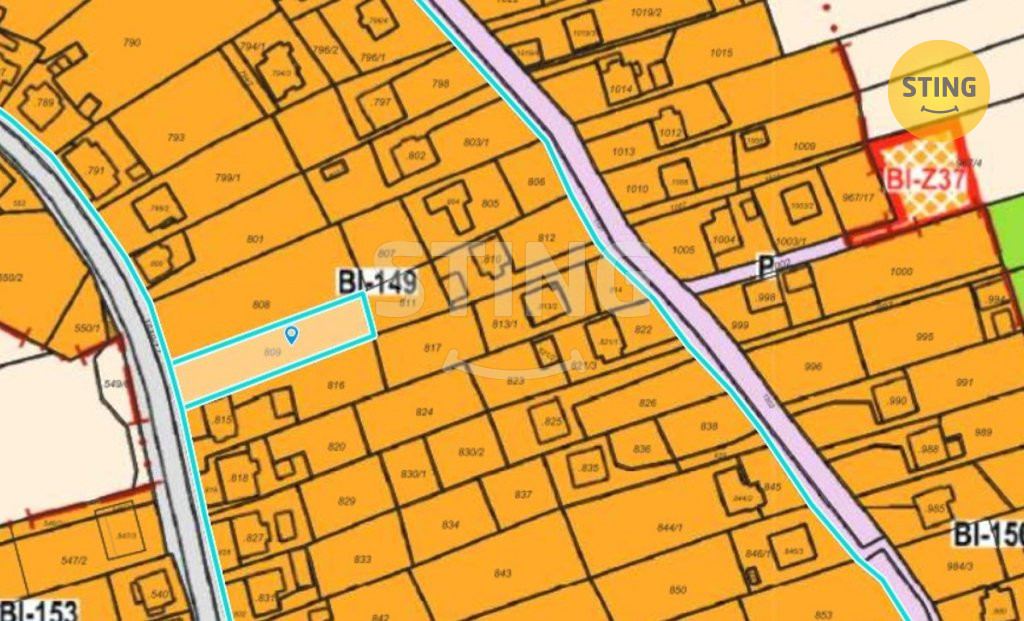 Pozemek je dle územního plánu díky určení pro individuální bydlení (BI)