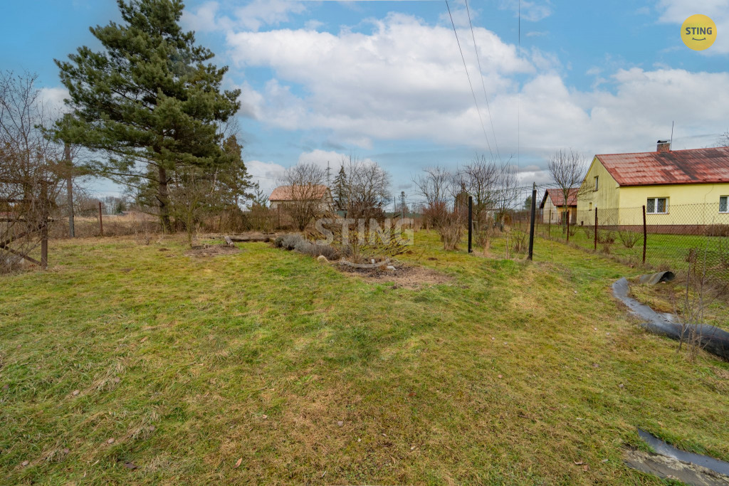 Pozemek je rovinatý, částečně oplocený a osázený vzrostlými okrasnými