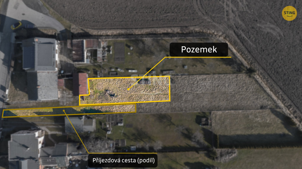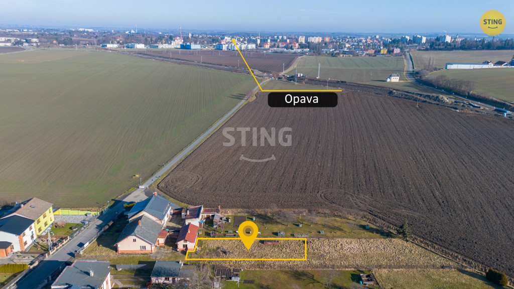 529 m? na okraji obce Otice. Rovinatý a slunný pozemek je dle územního