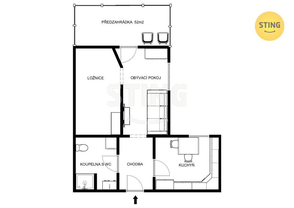 předzahrádkou 52 m?. Byt se nachází v přízemí bytového domu v klidné