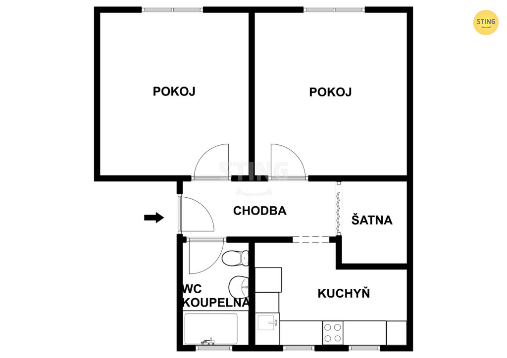 Dispozice bytu nabízí z prostorné chodby přímý vstup do dvou