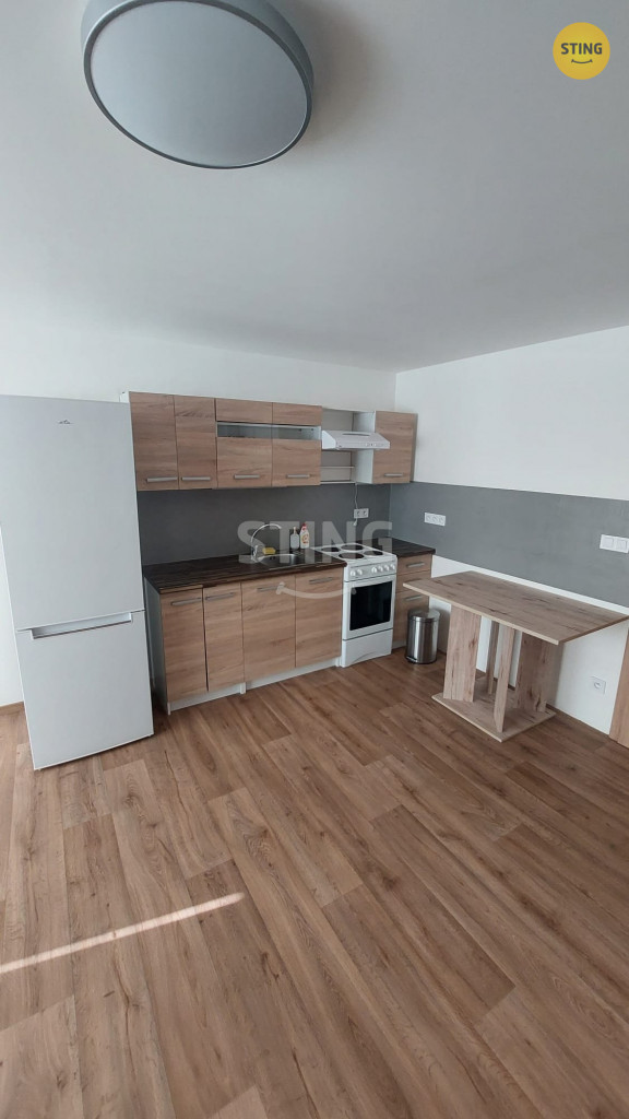 K dispozici je částečné vybavení: nová kuchyňská linka, lednice,
