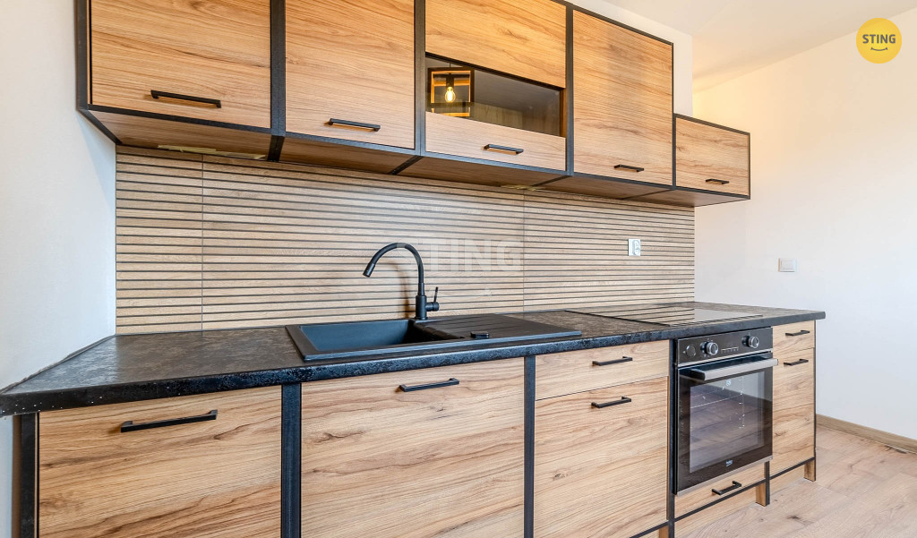 kuchyň s novou linkou, vestavěnou troubou a elektrickou varnou deskou,