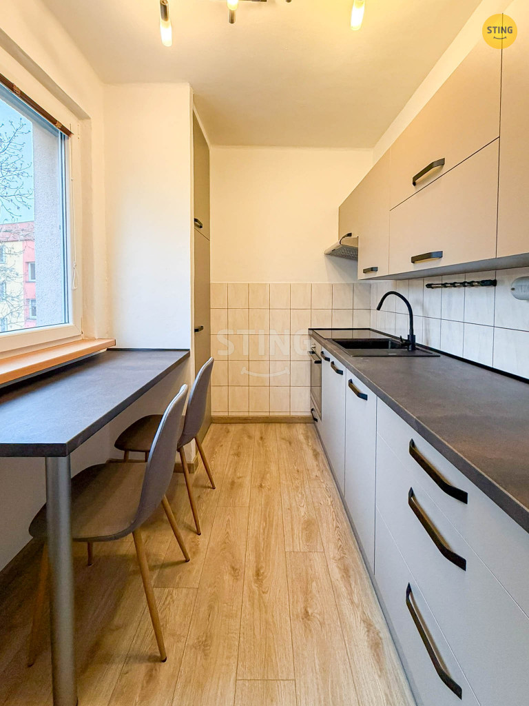 Nabízíme Vám podnájem bytu 2+1 s komfortní velkou lodžii po celkové rekonstrukci, který se nachází v 2. patře domu bez výtahu na ulici Haškova v Karviné-Ráji. V celém bytě je vyrovnaný podklad a položena vinylová podlaha. Jsou zde nové rozvody elektřiny v mědi, hladké omítky. Koupelna je zděná (v obkladech a s dlažbou) se sprchovacím koutem, umyvadlo se skříňkou s úložnými prostory, nad umyvadlem zrcadlo, k dispozici je umístěna pračka. Dále je v bytě samostatné závěsné WC. V předsíni je vestavěná skříň. Kuchyň má novou kuchyňskou linku s novou vestavěnou myčkou na nádobí Elektrolux, elektrickou troubu a indukční varnou desku, k dispozici je i lednička. Nad varnou deskou je digestoř. V blízkosti domu je lékárna, škola, školka, lékaři, park s tenisovými kurty. Ohledně prohlídky mě neváhejte kontaktovat.