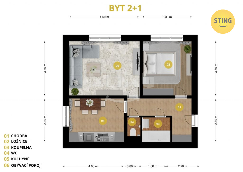 byt 2+1 o velikosti 60 m?, který se nachází v 1. nadzemním podlaží
