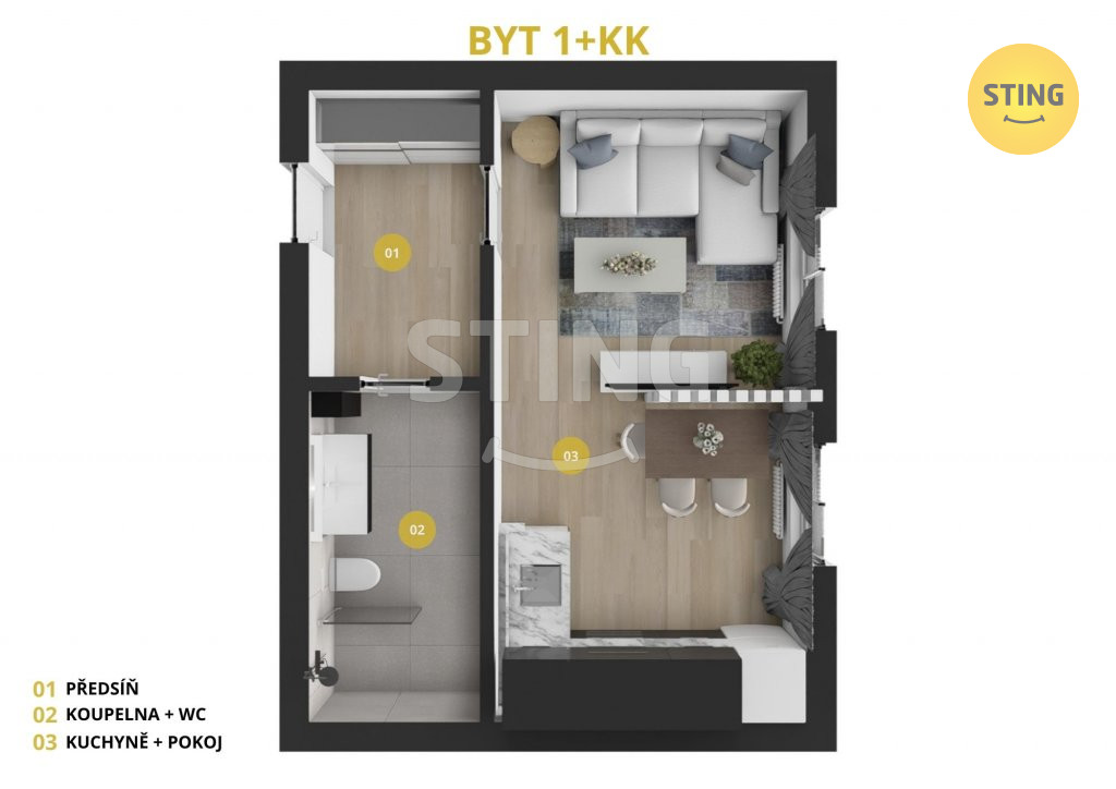 o dispozici 1+kk.