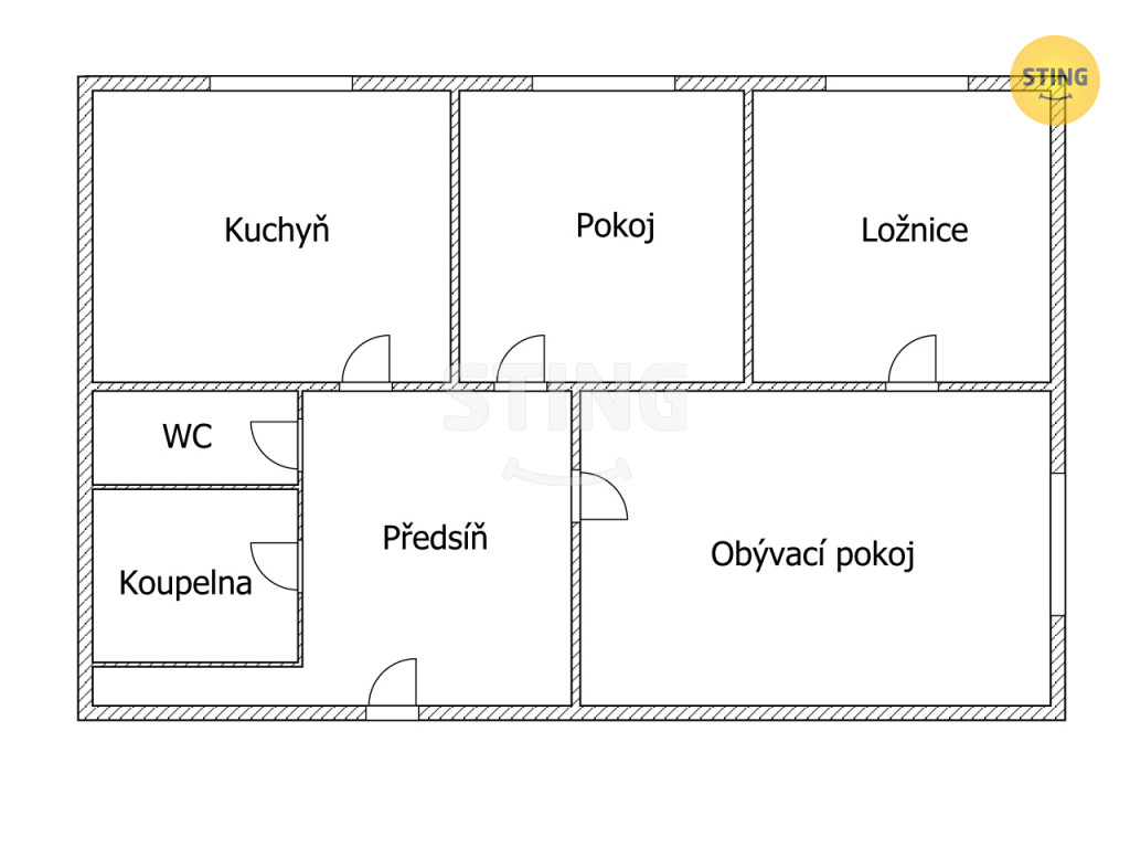 Obývací pokoj + dva samostatné pokoje, každý s vlastním vstupem