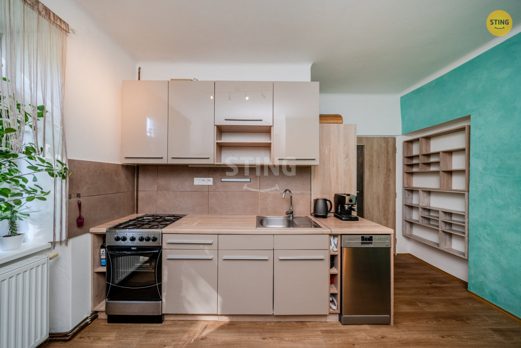 zděný sklep. Vytápění a ohřev vody řešeny vlastním plynovým kotlem.