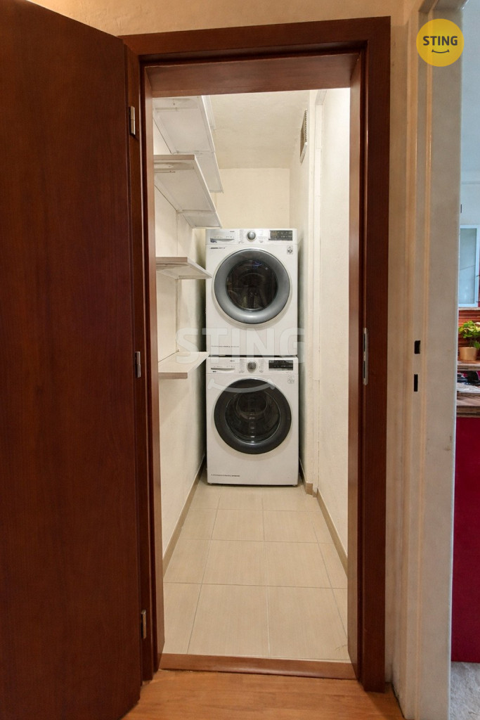 Součástí bytu je také praktická komora s prostorem pro pračku