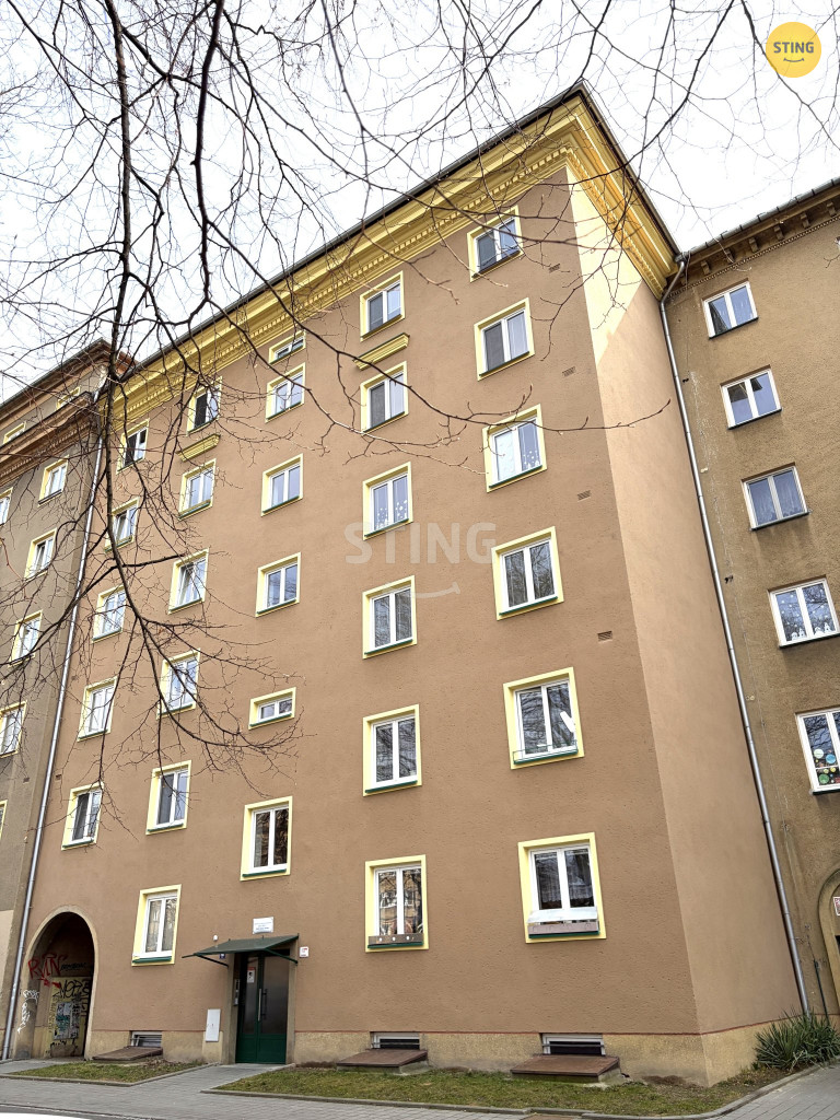 Byt se nachází ve 2. podlaží cihlového domu s výtahem a nabízí
