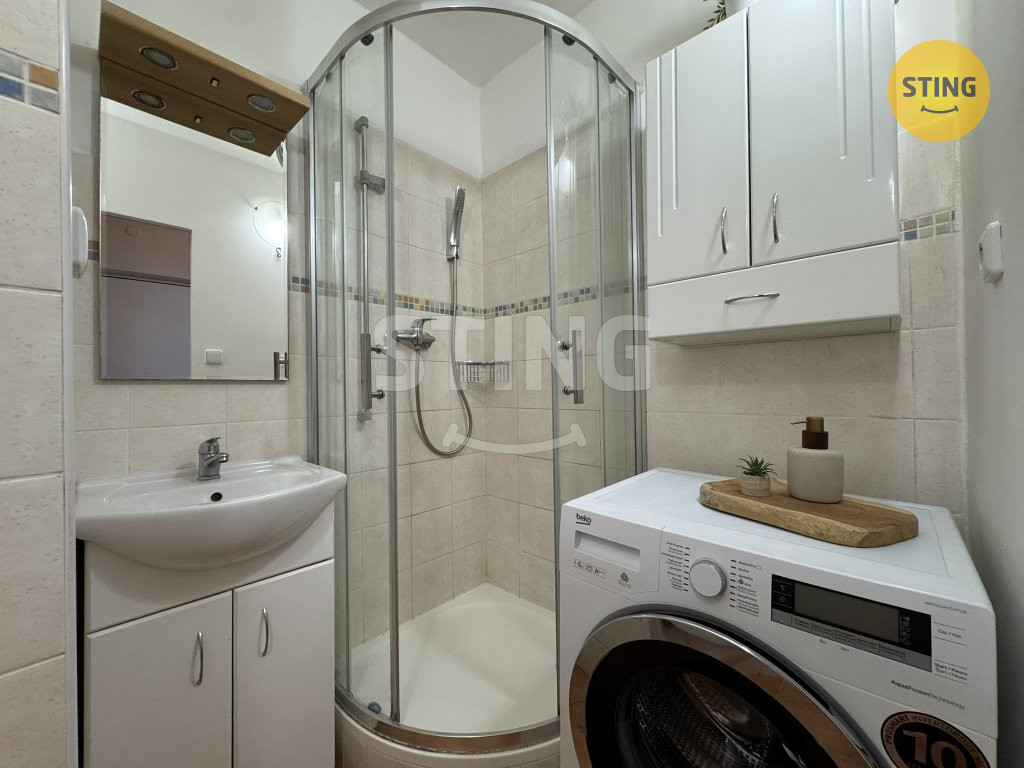 Byt je po částečné renovaci – zděná koupelna se sprchovým koutem a WC,