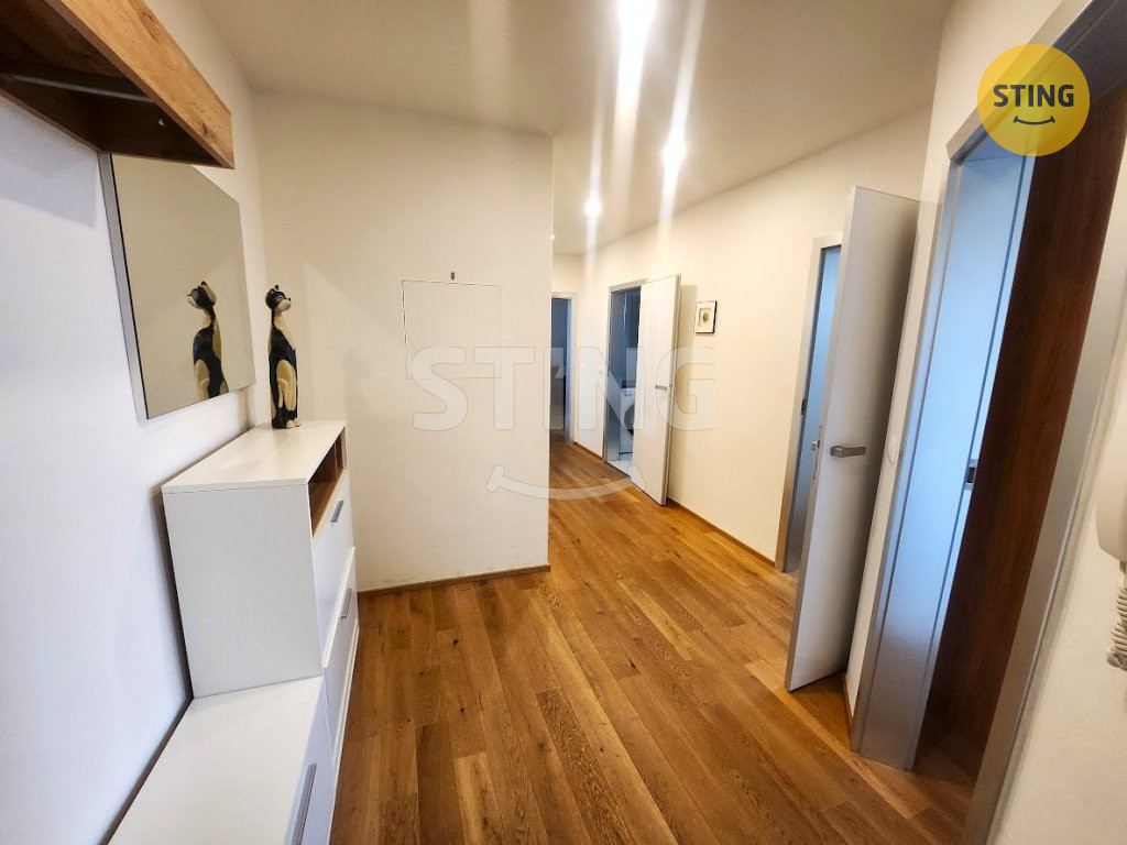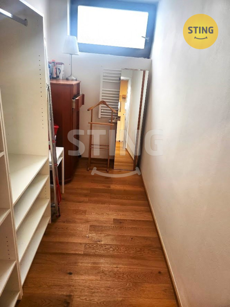 s výtahem. Z prostorné chodby je vstup do ložnice, šatny, koupelny s WC a