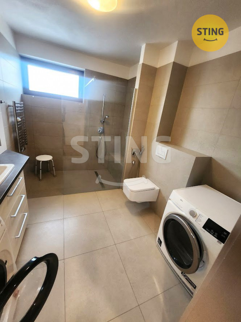 Dále zůstává pračka a sušička. V obývacím pokoji k dispozici sedačka