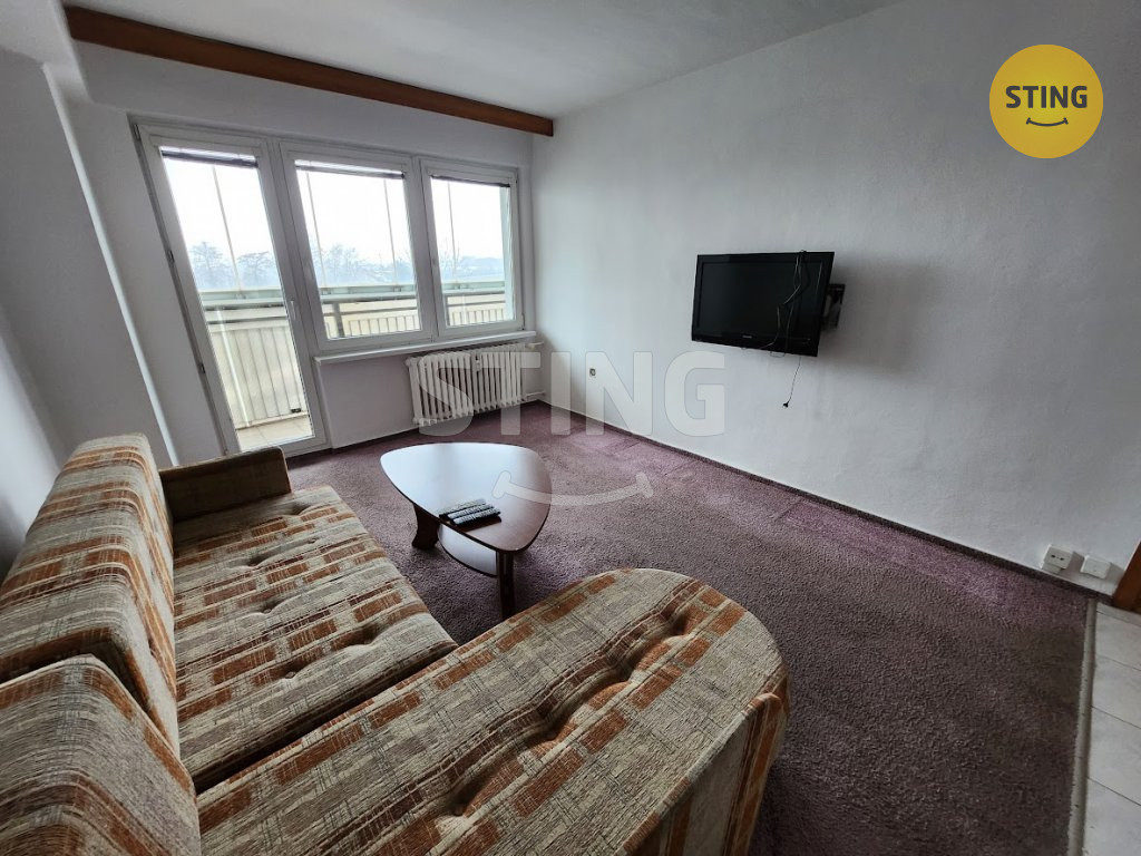 sedačka a televize . Velká zasklená lodžie je přes oba pokoje. K dispozici