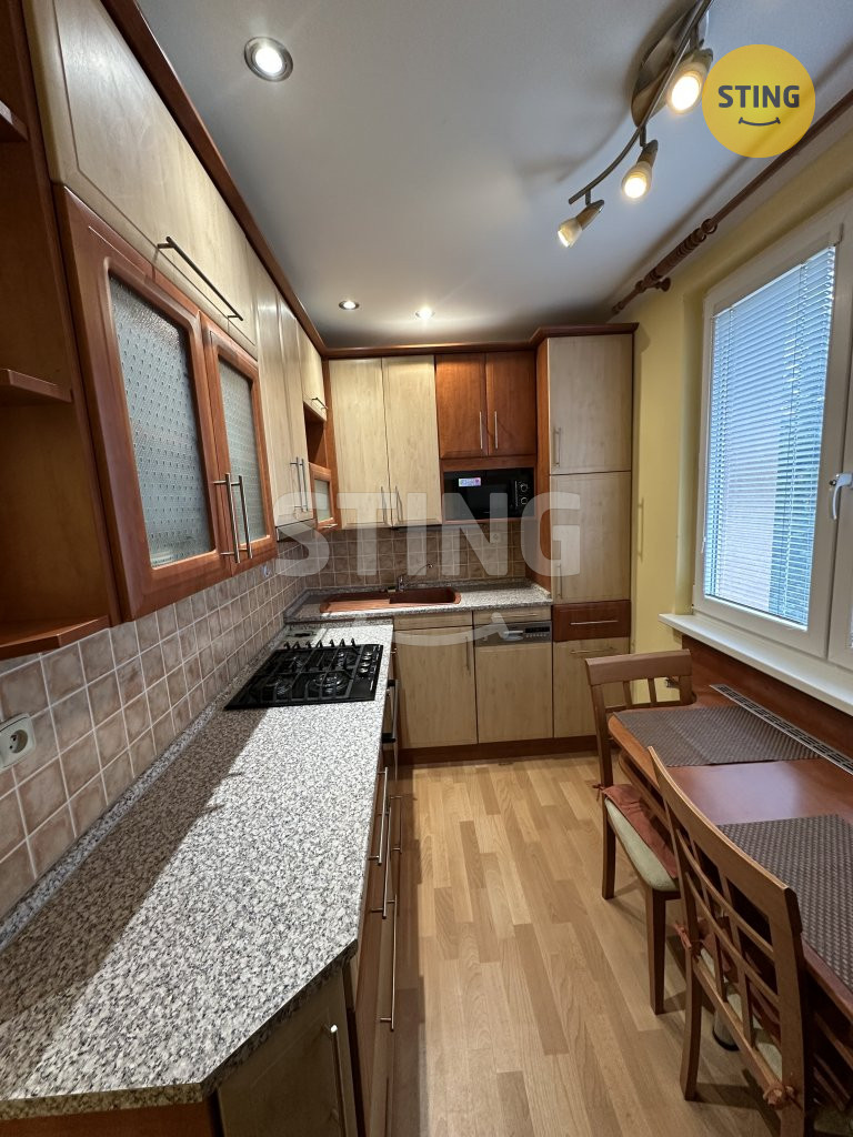 Nabízíme k pronájmu byt o velikosti 3 + 1 (60m2), umístěný ve 4. NP panelového domu na ulici 1. máje v Rožnově pod Radhoštěm. Byt je po částečné rekonstrukci bytového jádra s kuchyní, koupelnou (pračka, sušička, sprchový kout ) a samostatným WC. Kuchyně je vybavena lednicí, elektr. troubou, plynovým sporákem, digestoří, myčkou, mikrovlnou troubou a dalšími drobnými kuch. pomocníky. Nové podlahy ve všech pokojích. Součástí obývacího pokoje je vstup na taktéž zrekonstruovaný balkón s krásnými výhledy. K dispozici je také sklep, umístěný v suterénu domu. Vratná kauce činní jeden nájem. Nájemné je ve výši 13.500,–Kč /měsíc + zálohy na energie. V okolí domu se nachází dětské hřiště, školka, škola, supermarket aj…