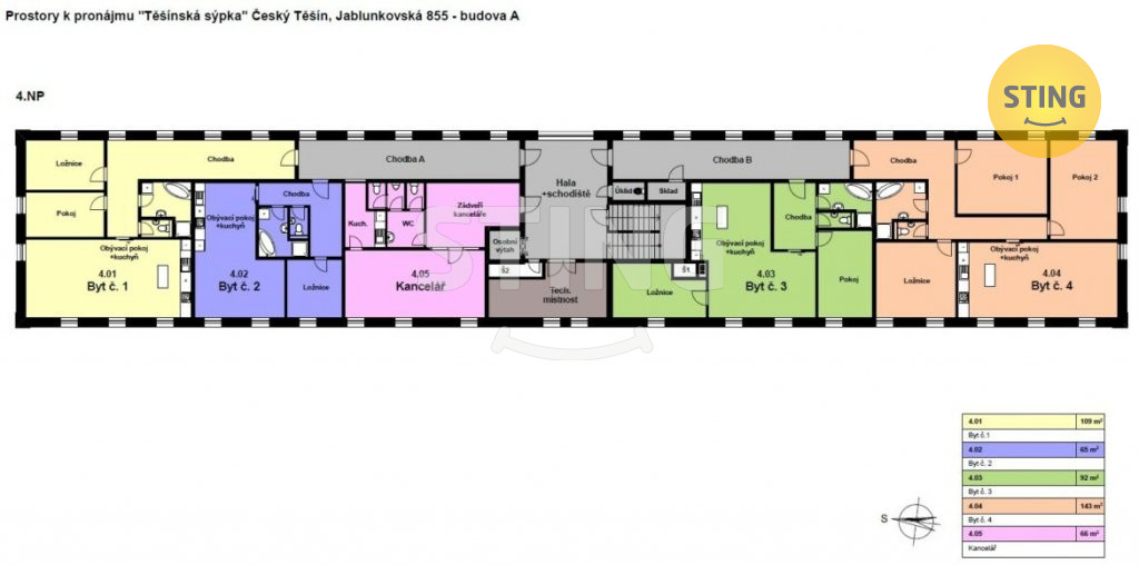 Výhodou i možnost pronájmu bytové jednotky ve 4.NP, což je ideální