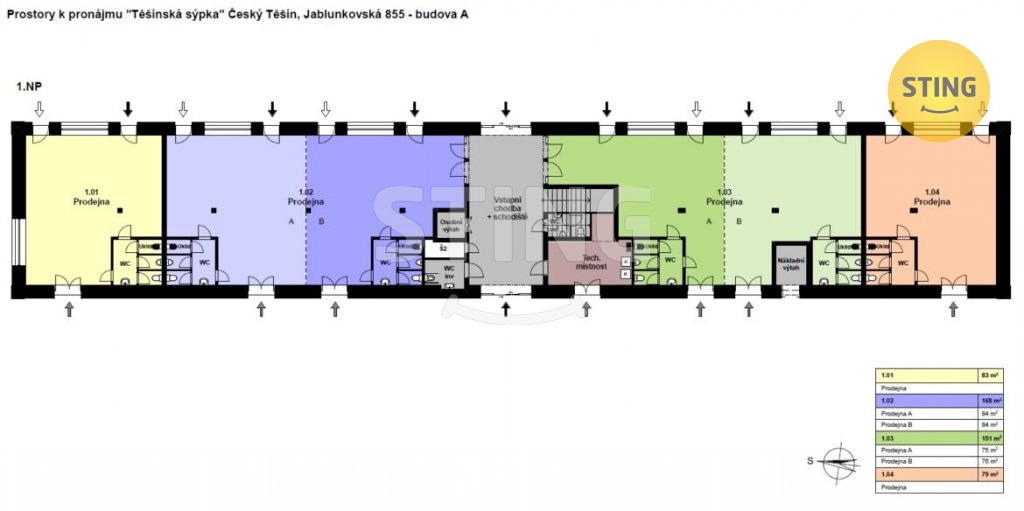 6 obchodních prostor o výměře 75–84 m2), s možností