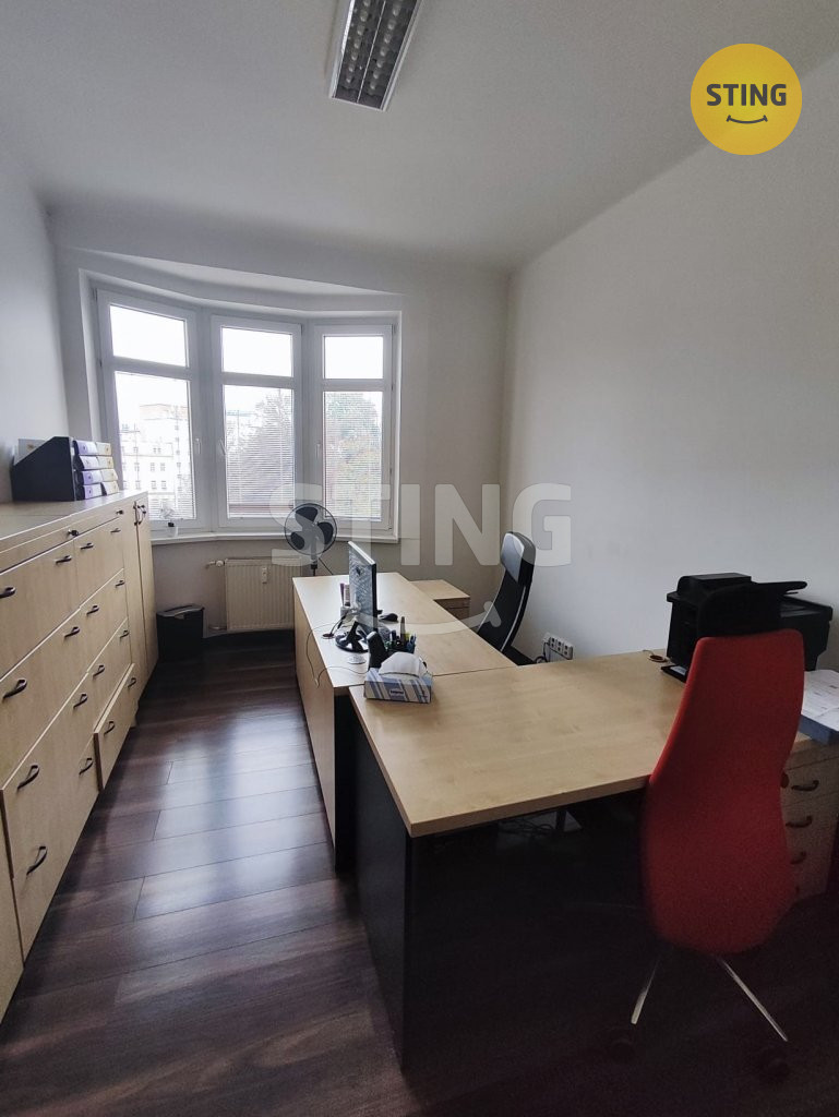 Nabízíme k pronájmu slunnou, prostornou, kancelář o výměře 16 m2 ve čtvrtém nadzemním podlaží budovy se vstupní místnosti s kuchyňkou a WC o velikosti cca 4 m2 na ulici Denisové v historickém centru Ostravy s výhledem na Nádražní ulici a BBIO. Rohová budova je umístěna na frekventované spojce z historického jádra Ostravy k obchodnímu centru Karolina.Výborná dopravní dostupnost